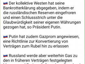 PS: "alles hat ein €nde, alles geht vorbei, auch diese WucherPreisSanktionsAmpel geht und bricht, im Mai" :D