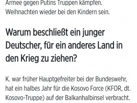 Meine Fresse. Was für ein Arschloch muss man sein, freiwillig seine Familie mit drei Kleinkindern zurückzulassen, um in einem fremden Krieg zu kämpfen???
