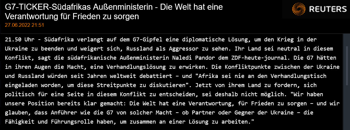Südafrika lässt sich durch die G7 und NATO nicht instrumentalisieren.