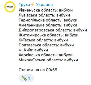 Trucha.ua meldet Explosionen aus zahlreichen Gebieten der Ukraine.