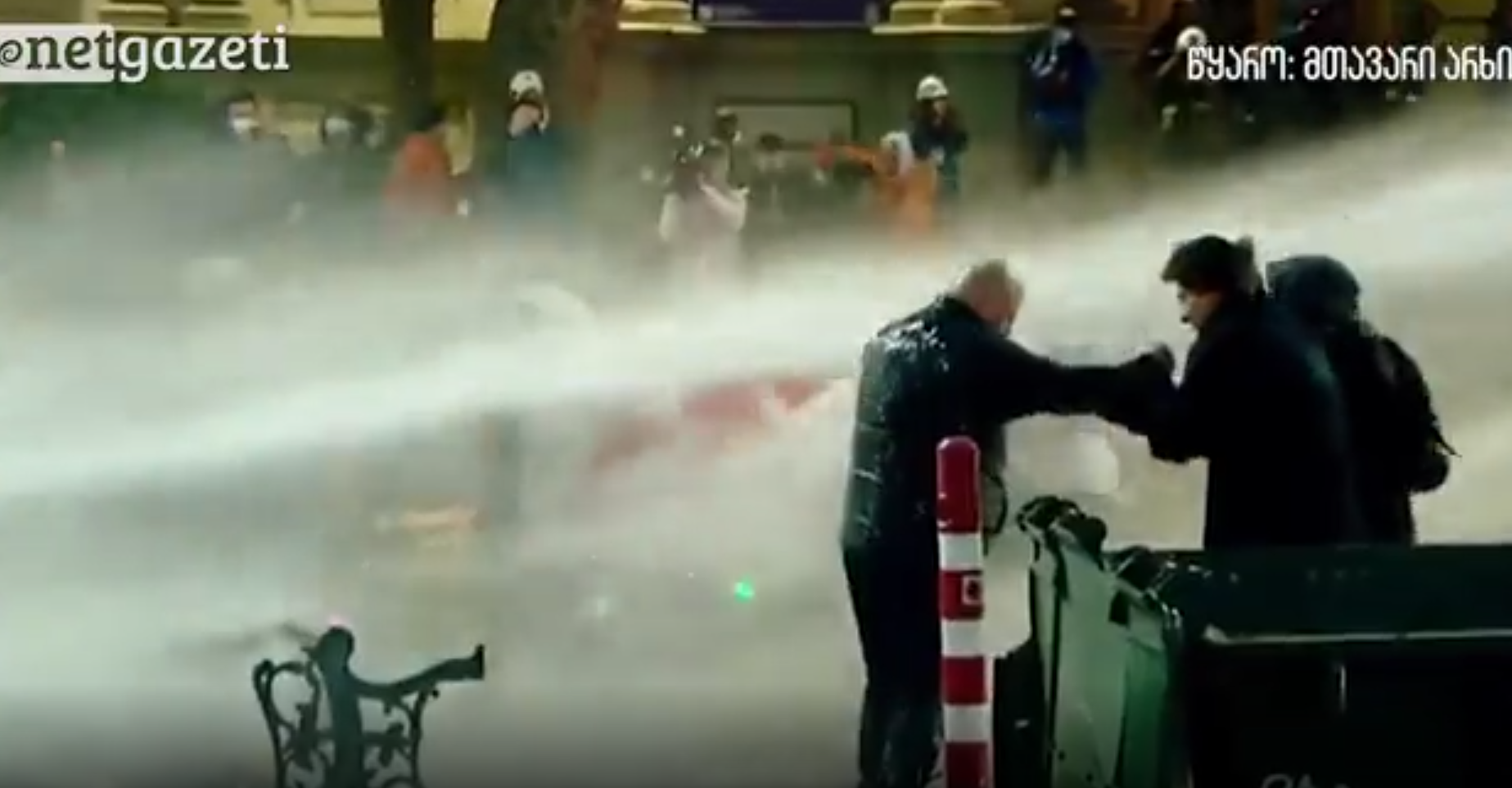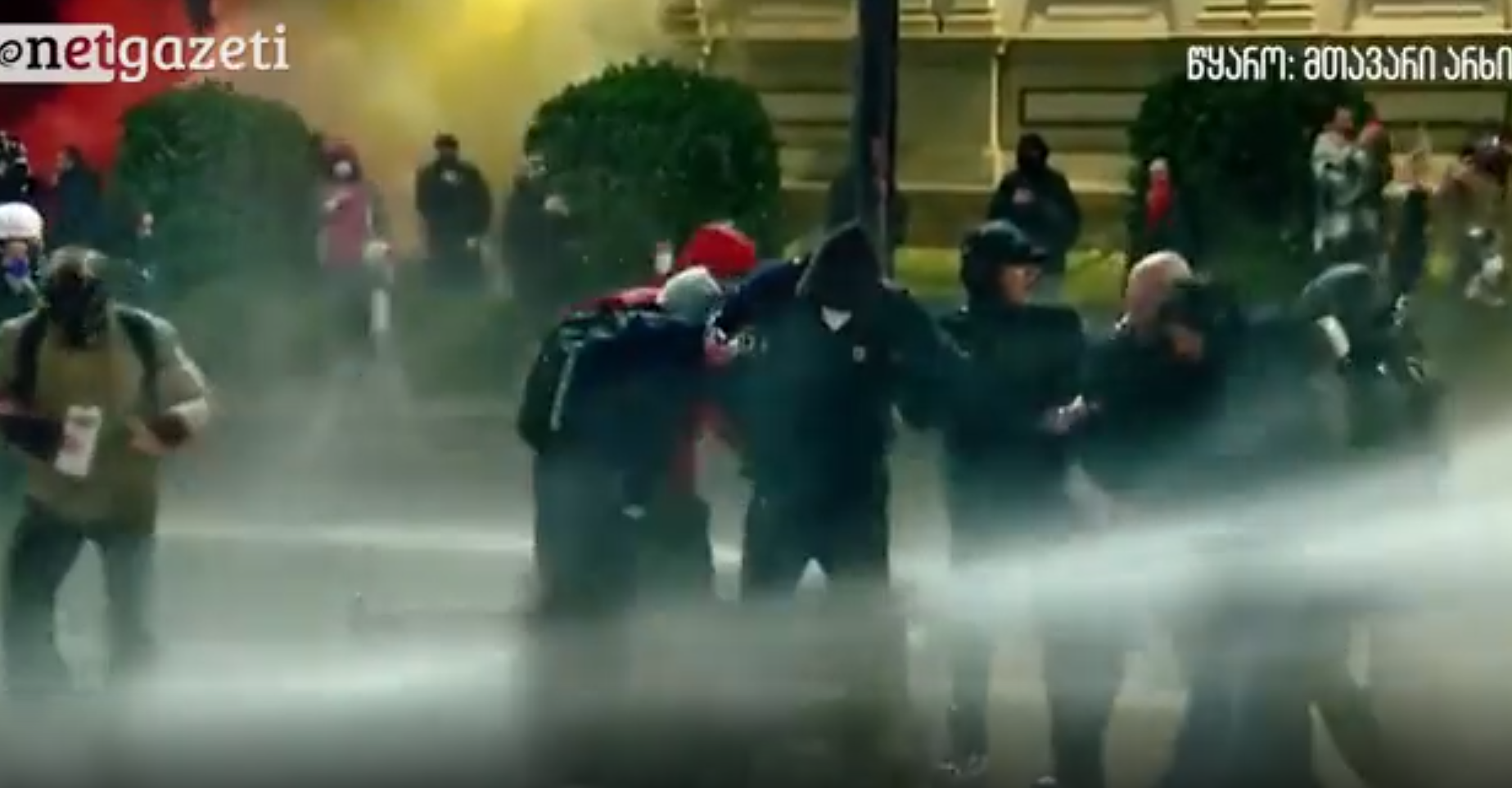 Und in Tiflis kommt es seit mehreren Stunden zu massiven Zusammenstößen mit der Polizei, die Sicherheitskräfte versuchen, die Randalierer mit Wasserwerfern zu vertreiben