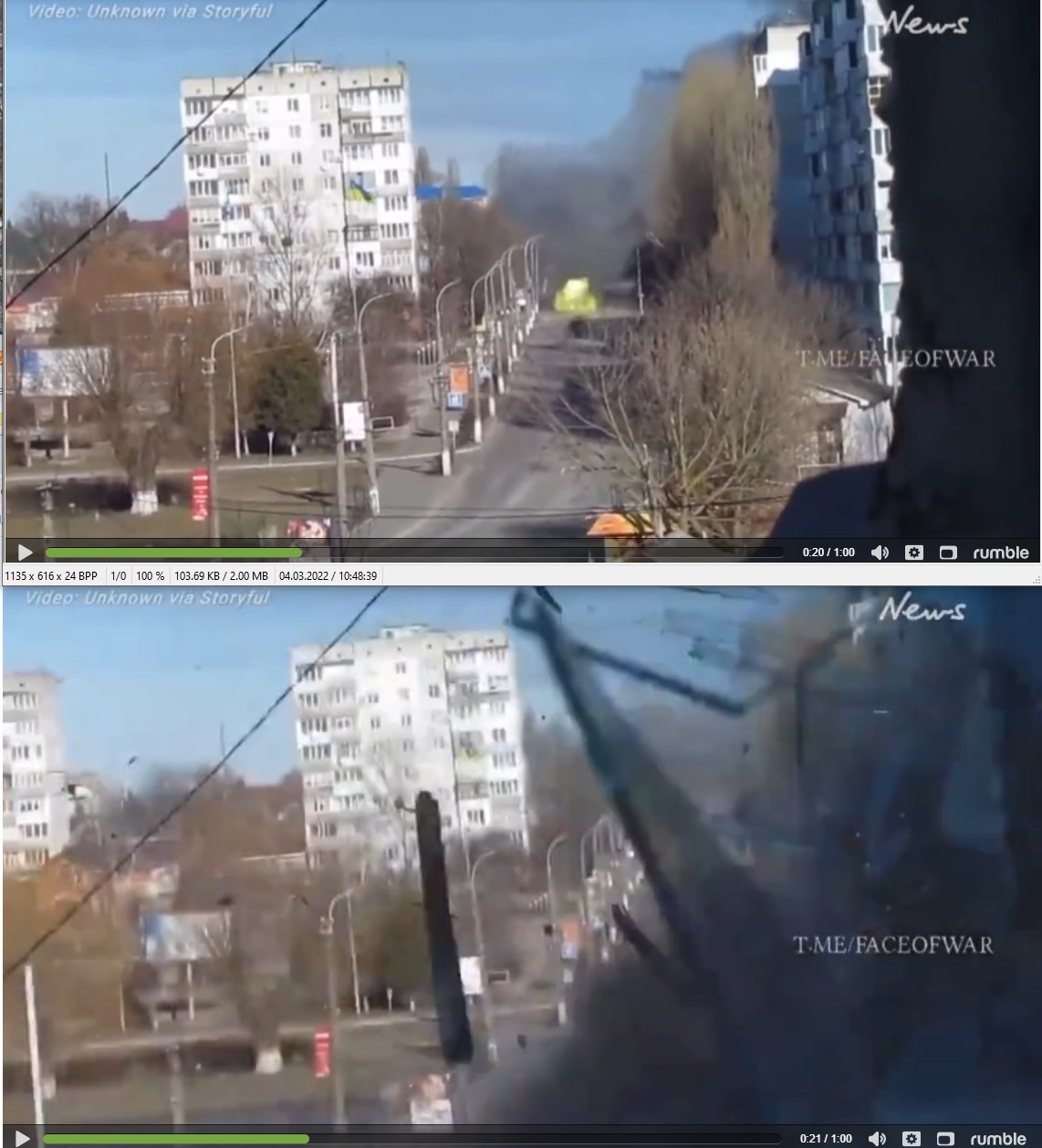 Mir ist gerade noch etwas aufgefallen bei dem Film aus Borodyanka (bei Kiew), wo die Ukrainer ihre Waffen zwischen die Hochhäuser gestellt haben: