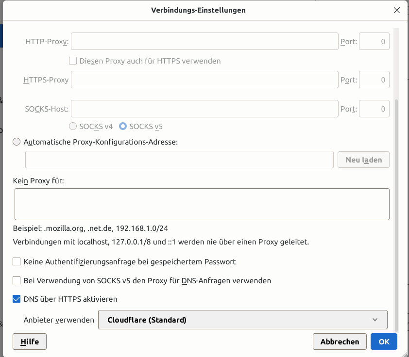 In Firefox bspw. ist dies möglich, indem man in den Einstellungen unter "about:config" die Option "network.trr.mode" auf "2" stellt: