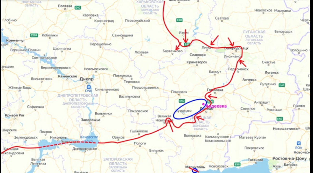 Kann jemand Russisch? Ich nehme an das rot geriffelte ist die ukrainische Armee im Donbass.