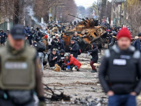 Falls jetzt irgendwer irgendwie grübelt - in Buchta gab es weder so eine Allee noch Panzer, noch so viele Leute.