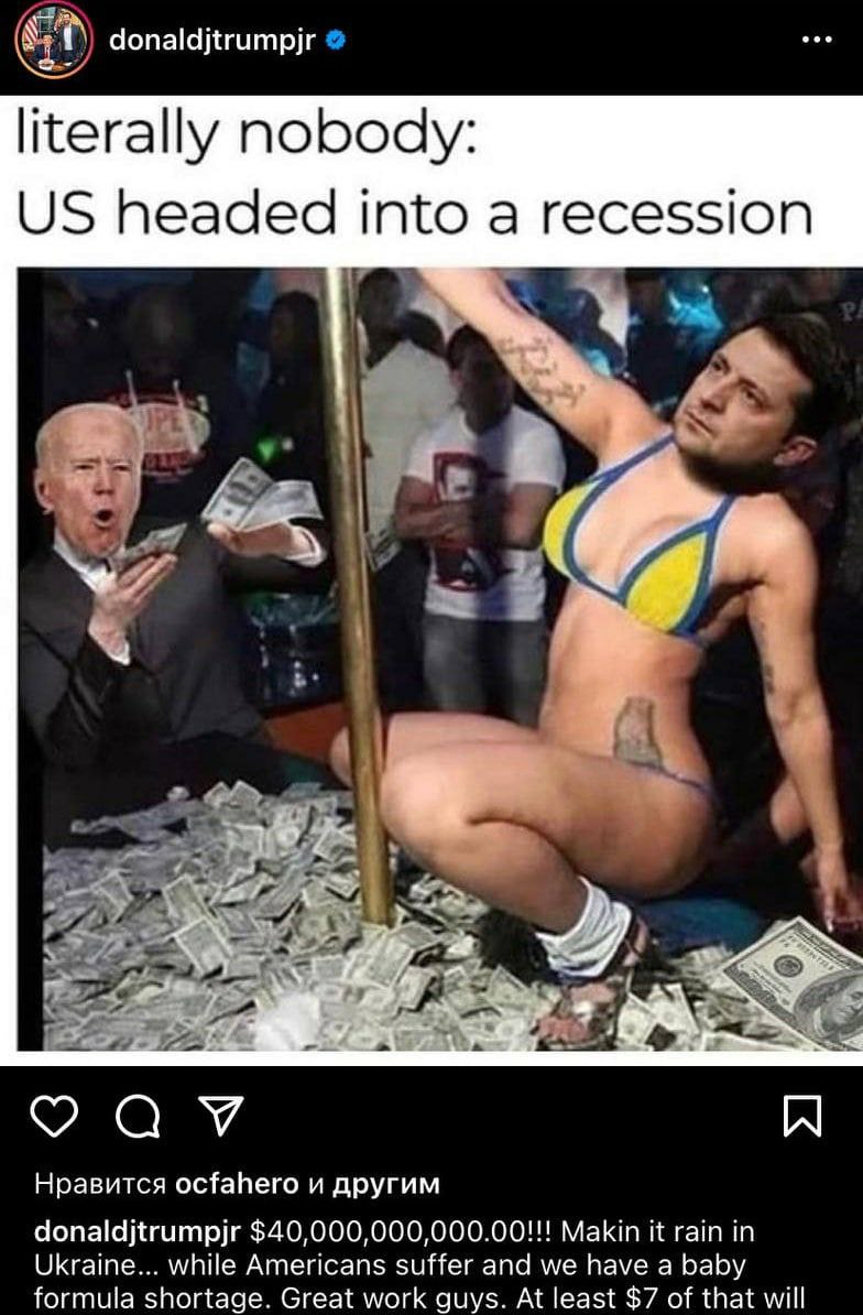 “40 billion dollars! Money raining on Ukraine... while Americans are suffering and we are seeing a shortage of baby food. Great job guys. Of this, only 7 dollars will go to Ukraine itself ... the rest is a rollback to corrupt politicians.”"