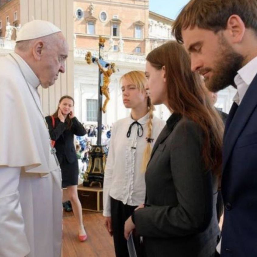 Kateryna Prokopenko, Frau von Denis Prokopenko (Kommandeur des Asow-Regiments) bettelt beim Papst. Wieso bekommt so ein Gesocks überhaupt eine Audienz?!