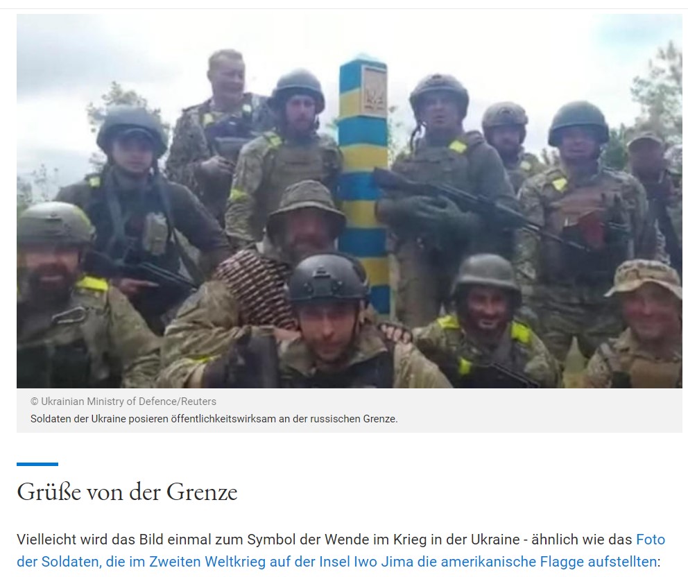 ist allerdings tatsächlich ein Zeichen der Schwäche Russlands, wenn die ukrainische Armee an die Grenze gelangt. Das wird verständlicherweise propagandistisch ausgeschlachtet, als sei man direkt auf dem Roten Platz angelangt.