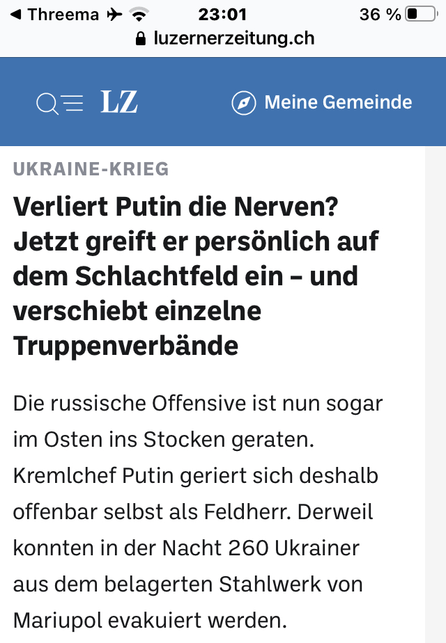 - man muss sich auch in die Lage des Gegners versetzen um die richtigen Schlüsse zu ziehen, allerdings sehe ich weder die Ukraine noch Russland als Gegner an...