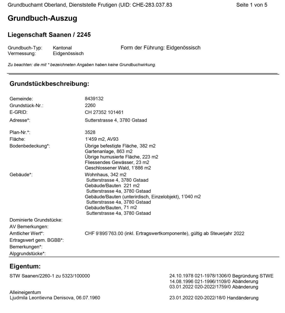 ... Neben Israel scheint die Schweiz bevorzugt zu sein. Hier das dortige Anwesen von Ludmila Denisova, die geschasste Ombudsfrau...