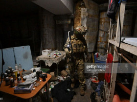 Russische Soldaten untersuchen die Keller von Azovstahl.
