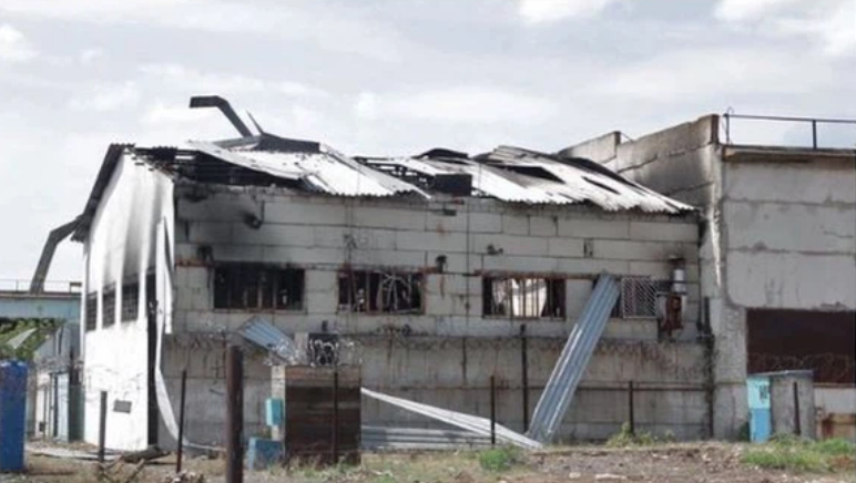 Für mich steht fest, dass es keine HIMARS war. Der "Schuppen" steht noch und weist Brandspuren auf, das schliesst einen GMLRS-Treffer aus. Einige Bilder zeigen, dass die Stahlbetten im Innern grösstenteils nicht einmal verschoben wurden. Der betroffene Gebäudeteil: