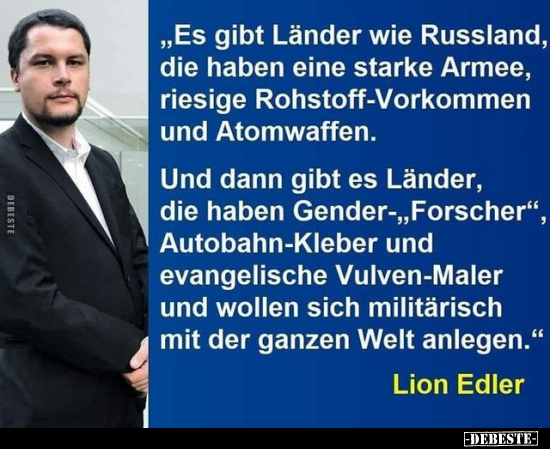 Ich habe die Befürchtung, wir sind erst am Beginn der Bestrebungen, wie die Welt der Zukunft aussehen soll. Und es wird kein schnelles Ende mit Schrecken, es wird ein langes Siechtum in Europa, bis die Massen ihre SInne wieder beieinander haben um eigene Ziele zu definieren und zu verfolgen. Dabei hilft ganz sicher auch die Bewußtwerdung, dass es als genderclown nicht sonderlich sinnvoll ist gegen physisch gut geschulte Männer antreten zu wollen. Ich wäre sowieso dafür, dass brd-land eine sinnvolle verwendung findet für die gender*chen und diese militärisch ausbildet und gegen RUS antreten läßt.