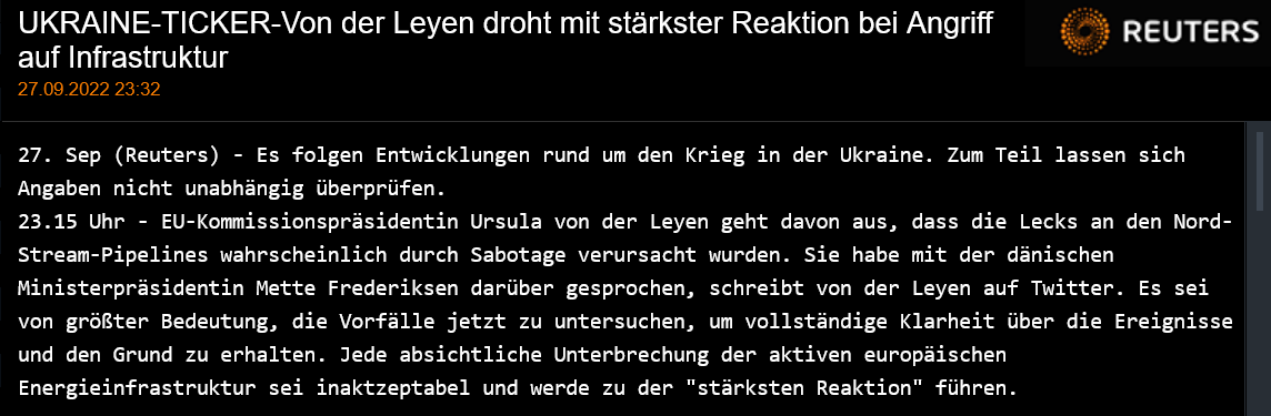 Gibt es etwas, dass die Amis ggf. verunsichert, dass sie genau jetzt schon NS2 zerstören.
