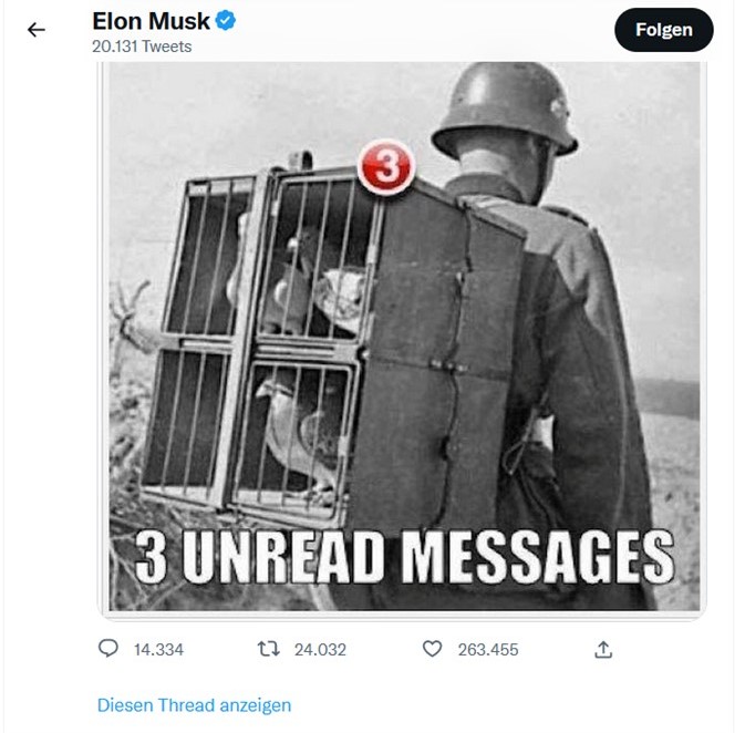 Hier eine interessante Analyse zu Musk und wie man seinen Humor und seine Aussagen auch verstehen könnte. Für mich eine interessante Erklärung, warum der Typ in den Medien so omnipräsent ist, obgleich der doch eigentlich nichts beizutragen hat, bzw nicht mehr wie viele andere auch.