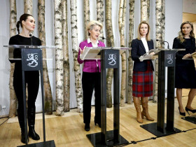"Wir arbeiten hart daran, Russlands Fähigkeit, den Krieg gegen die Ukraine zu führen, weiter einzuschränken. Ich kann berichten, dass die Arbeiten am neunten Sanktionspaket in vollem Gange sind", sagte sie [von der Leyen] auf einer Pressekonferenz während ihres offiziellen Besuchs in Finnland."