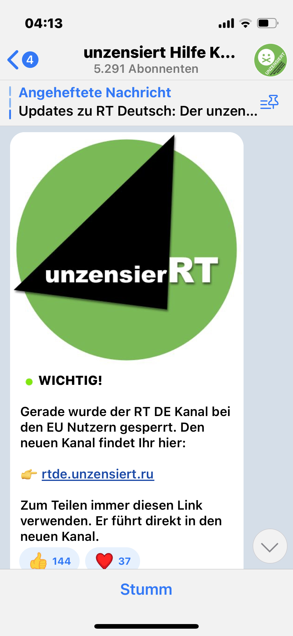 • Gerade wurde der RT DE Kanal bei den EU Nutzern gesperrt.