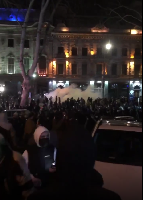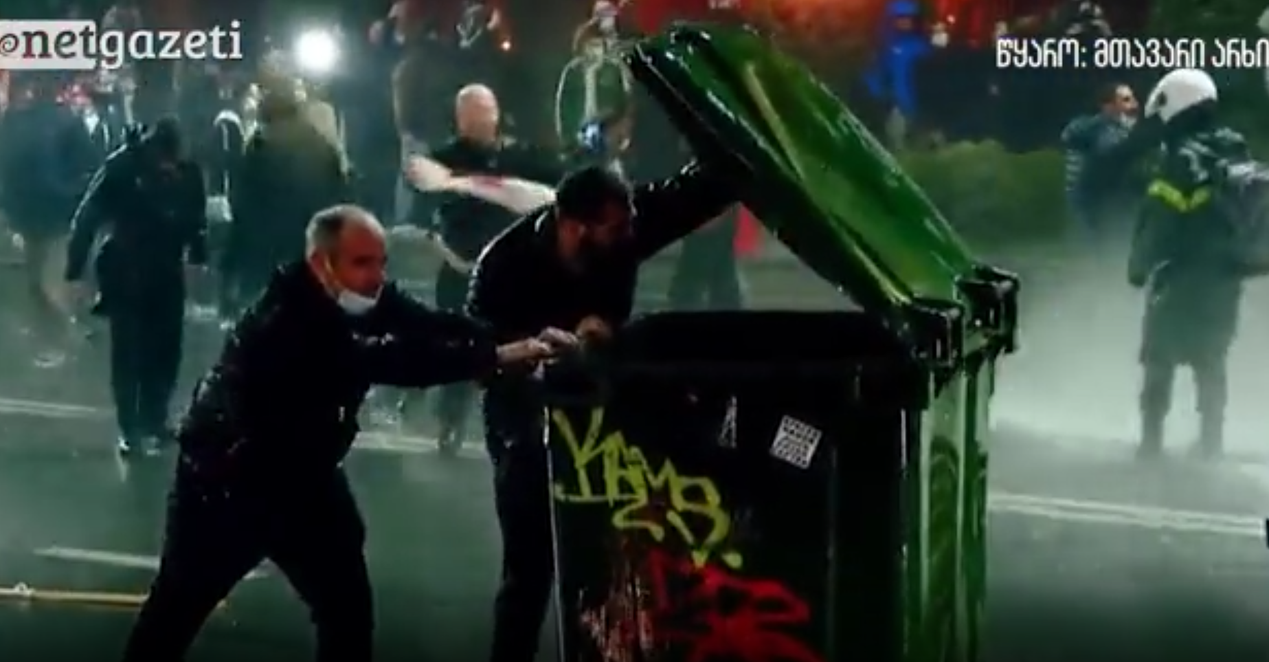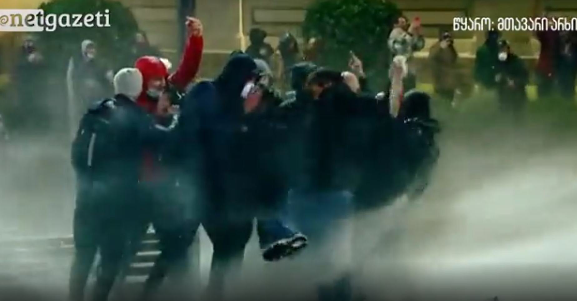 Und in Tiflis kommt es seit mehreren Stunden zu massiven Zusammenstößen mit der Polizei, die Sicherheitskräfte versuchen, die Randalierer mit Wasserwerfern zu vertreiben