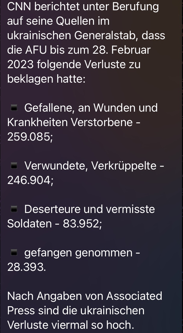 dass etwas besser wird. Ukr. Militär wird weiter dezimiert. Aber es ist "endlos".