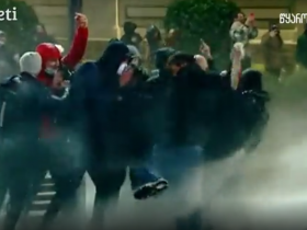 Und in Tiflis kommt es seit mehreren Stunden zu massiven Zusammenstößen mit der Polizei, die Sicherheitskräfte versuchen, die Randalierer mit Wasserwerfern zu vertreiben