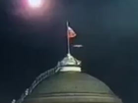 Die Drohne fliegt etliche 20? Meter hinter dem Fahnenmast vorbei auf ein anderes Ziel* zu - kann man aus der Perspektive schlecht erkennen. Wäre es als Fake gedacht, stiegen wohl kaum (für alle sichtbar) Mitglieder der Präsidentengarde auf die Kuppel. Die Kuppel als Ziel wäre auch sinnlos - darunter ist nur eine Stahlkonstruktion.