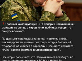 Ukrainischen Sendern zufolge soll der Oberbefehlshaber liquidiert worden sein, weshalb es Zaluzhnyy nicht möglich war, heute an einer Sitzung des NATO-Militärausschusses teilzunehmen, "selbst wenn diese im Rahmen einer Videokonferenz stattfand".