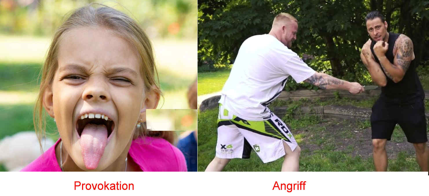 Wenn einer "mit einem Messer vor meinem Gesicht herumfuchtelt" ist das keine Provokation,sondern eine Bedrohung…