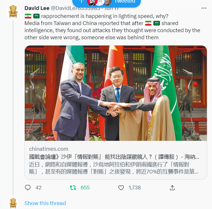 Nach dem Austausch von Intelligenzberichten zwischen Iran und Saudi Arabien habe beide festgestellt das der gegenüber nicht der Angreifer ist sondern eine dritte Partei, berichten chinesische Medien.