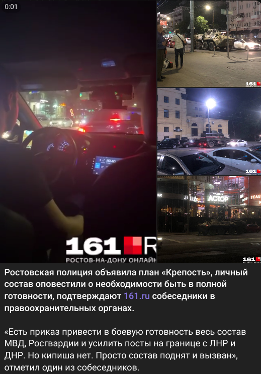 "Es gibt einen Befehl, das gesamte Personal des Innenministeriums und des Föderalen Wachdienstes in Alarmbereitschaft zu versetzen und die Posten an der Grenze zu den LNR und den DNR zu verstärken. Aber es gibt keinen Aufruhr. Es wurde lediglich das Personal aufgestockt und einberufen", so einer der Gesprächspartner.