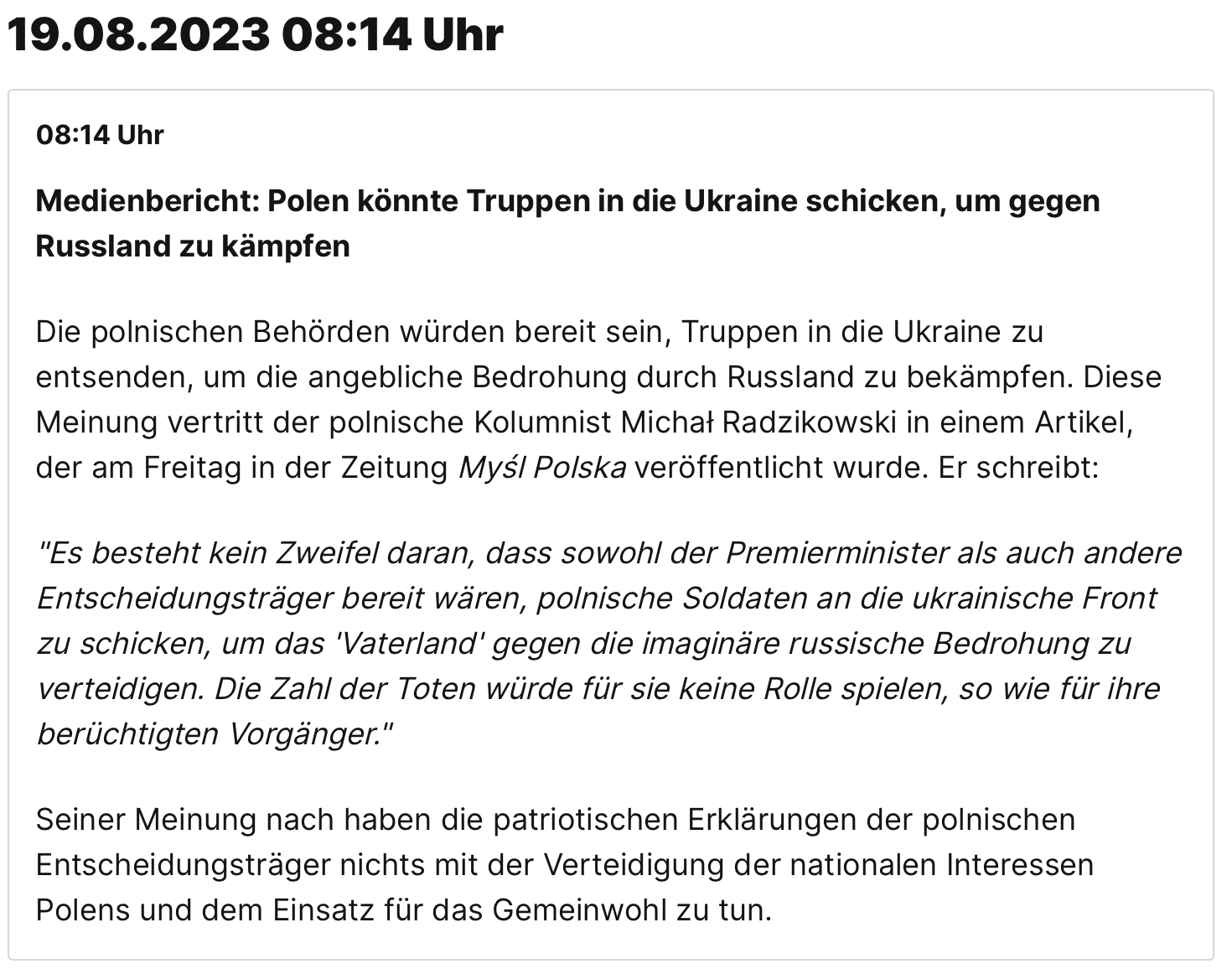 Bei der Meldung zur weiteren Mobilisierung dachte ich zuerst, die Russen wissen, daß die Polaken in absehbarer Zeit angreifen. Aber ist wohl nur ein Fake....