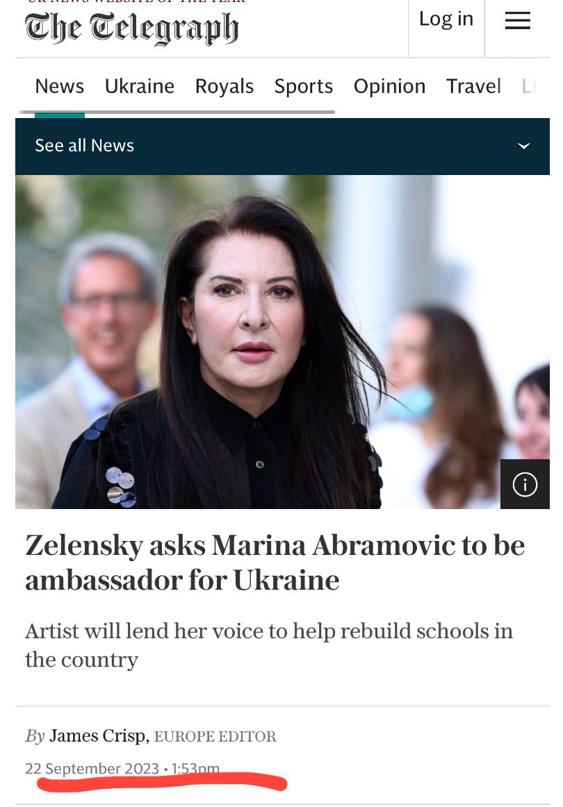 Zelensky asks Marina Abramovic to be ambassador for Ukraine