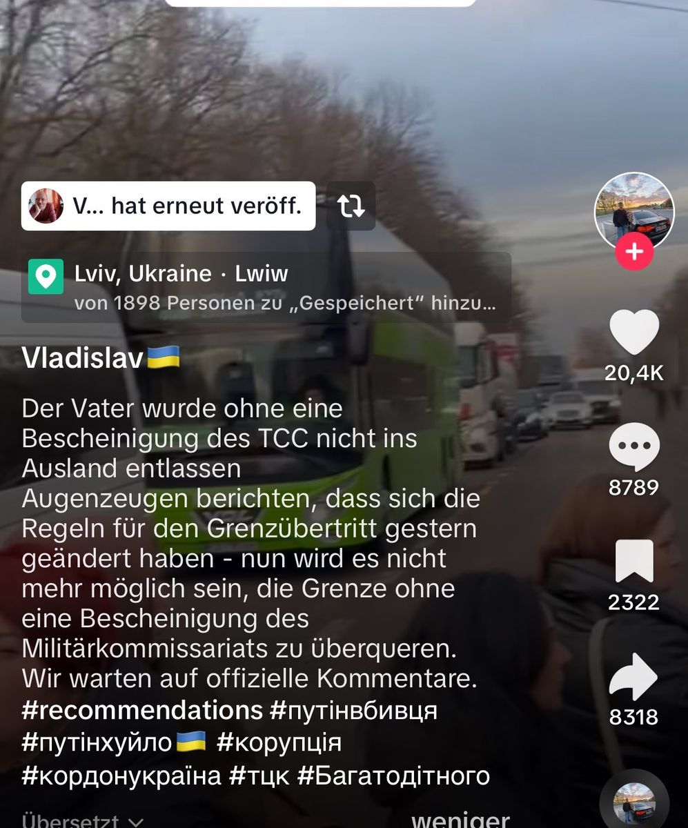 • Aufregung an der Ukrinischen/Polnischen Grenze: Ohne ein Ausreiseformular kommt man als Ukrainer nicht mehr raus.(Zitat)