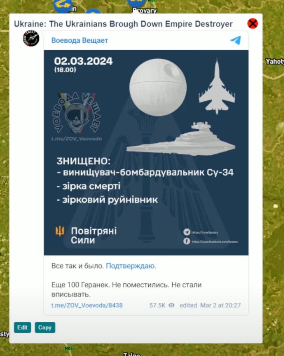 Geheimzuhaltende Quellen berichten, das für den Abschuss die 1. Luftzwillenbrigade verantwortlich ist und den Vaterländischen Arschlochorden I. Klasse an der goldenen Klokette verliehen bekommt. ![]()