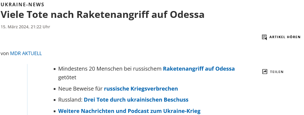 Gestern gab es eine bisher nicht offiziell bestätigte Meldung aus Odessa, ist vielleicht das was MDR meint.