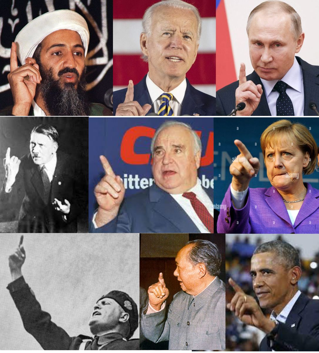Das mit dem linken Finger ist in der Tat interessant-ich habe tatsächlich kein Bild von der Islamisten-Geste mit der linken Hand ausgeführt gefunden. Generell scheint der linke Zeigefinger aber auch bei nicht-Moslems eher unbeliebt zu sein, abgesehen von Obama: