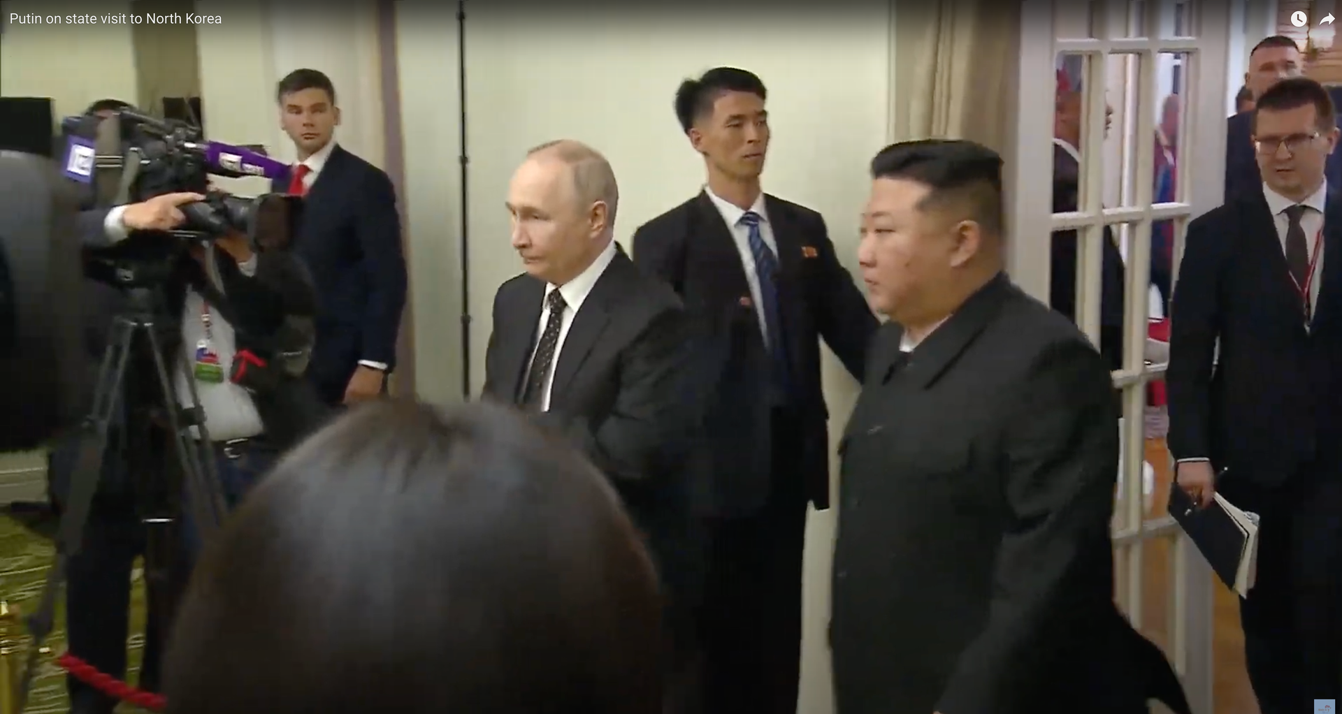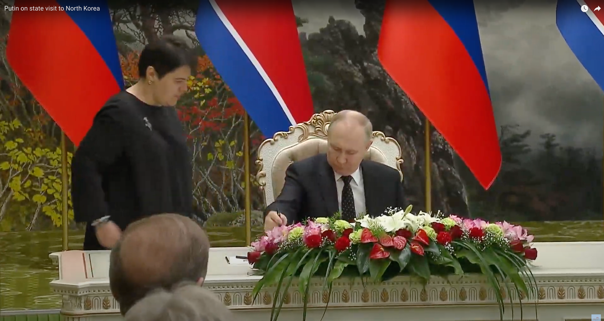 3. bei der Begrüßung mit Handschlag eilt sofort Putins Übersetzer und einer von Kim herbei (soweit normal), aber Letzterer zückt sofort sein Büchlein und schreibt fleißig mit, was seine Eminenz von sich gibt... ![]()
