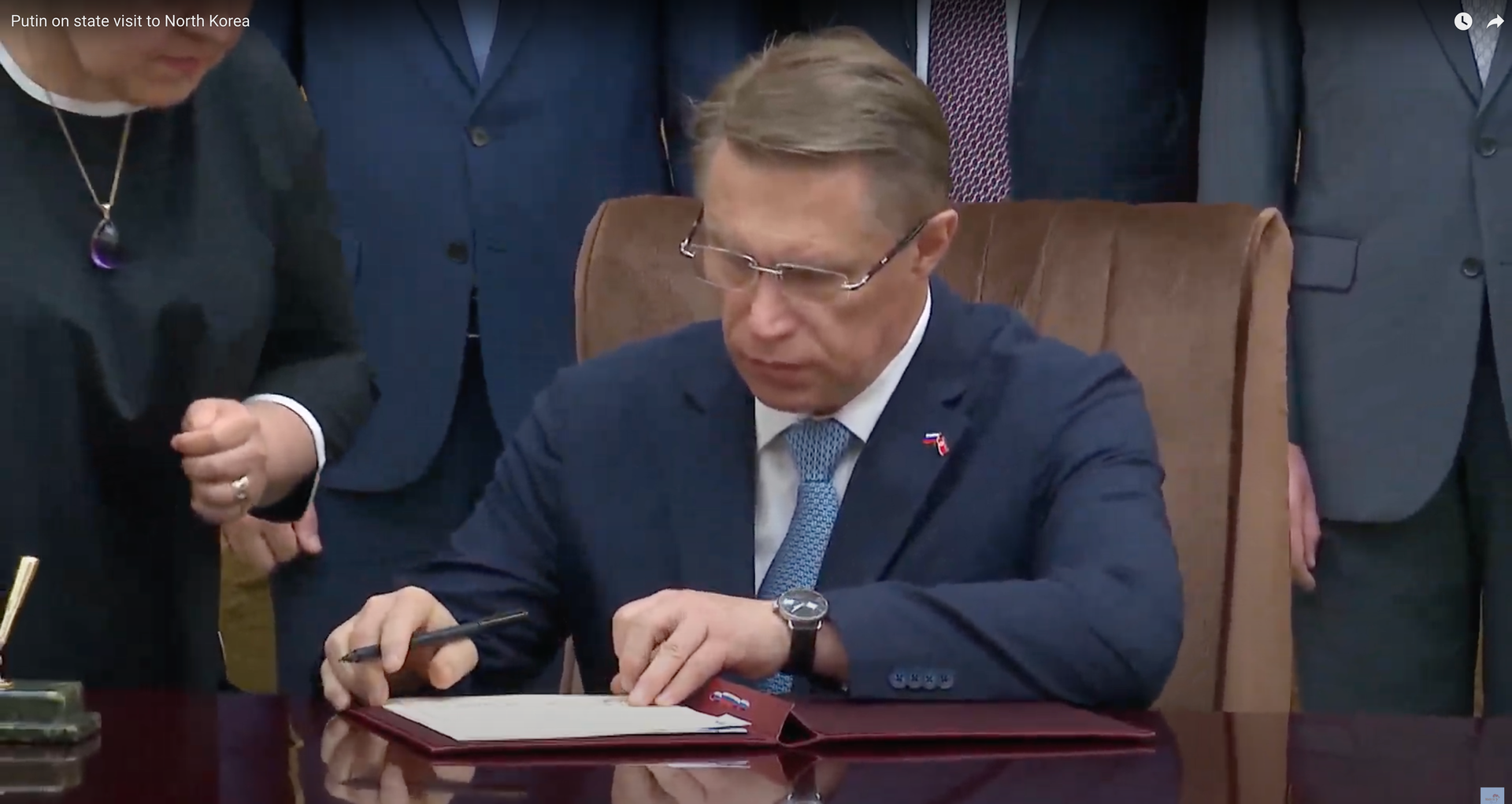 3. bei der Begrüßung mit Handschlag eilt sofort Putins Übersetzer und einer von Kim herbei (soweit normal), aber Letzterer zückt sofort sein Büchlein und schreibt fleißig mit, was seine Eminenz von sich gibt... ![]()