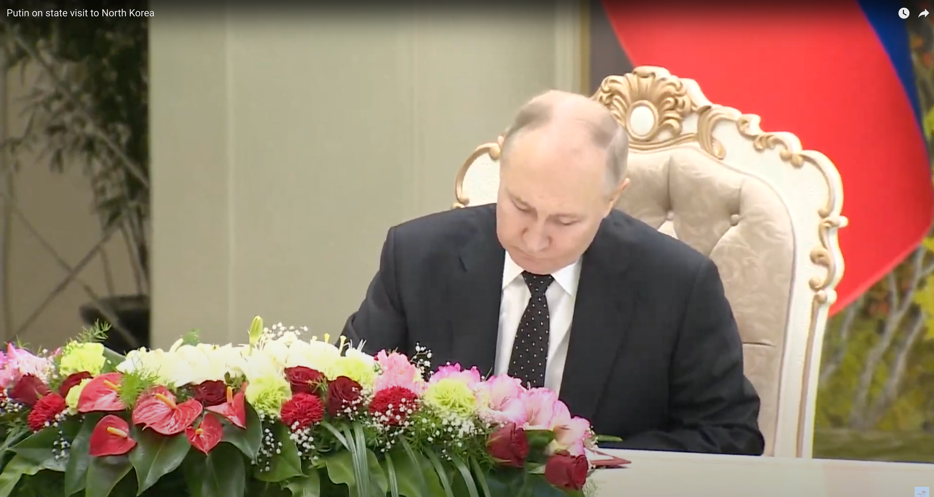3. bei der Begrüßung mit Handschlag eilt sofort Putins Übersetzer und einer von Kim herbei (soweit normal), aber Letzterer zückt sofort sein Büchlein und schreibt fleißig mit, was seine Eminenz von sich gibt... ![]()
