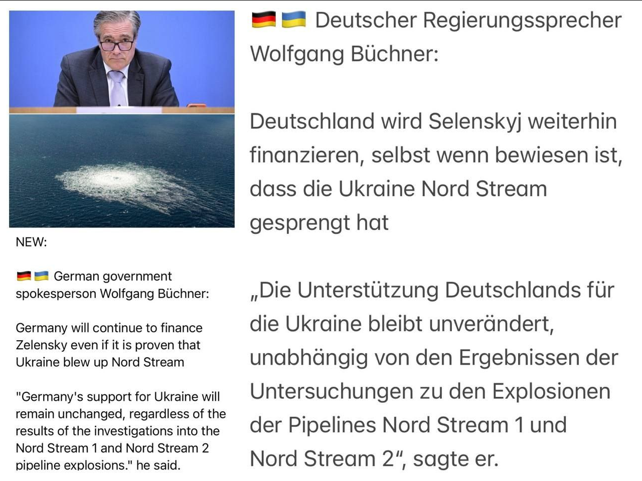 Das waren die Amis die im Rahmen der Nato uebung Baltops oder so aehnlich Nordstream gesprengt hatten ist doch bekannt und Biden hatte es angekuendigt oeffentlich und uns Olaf stand daneben und sagte nichts