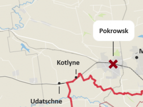 Westlich von Pokrowsk teilt sich die Eisenbahnlinie in eine Route, die jetzt durch den russischen Vorstoß unterbrochen wurde, und in eine zweite, die noch frei ist und parallel zu einer wichtigen Straße verläuft. Über diese beiden Linien, die Straße und die Schiene im Nordwesten, kommen noch Güter in die Stadt hinein. Allerdings fliegen russische First-Person-View-Drohnen fast zehn Kilometer weit. Von Kotlyne aus, dem kleinen Dorf, das die Russen nun an der unterbrochenen Eisenbahntrasse in Besitz genommen haben, können die Drohnen bis zu der nördlichen Bahnlinie fliegen. Die liegt nur sechs Kilometer entfernt. Das heißt, die Russen können dort durchgehend aufklären, Pokrowsk und seine Umgebung und die Zufahrtsmöglichkeiten betreffend. Das macht es für die Ukrainer immer schwieriger, Kräfte dort heranzuführen.