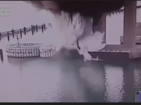 Heute um 4:44 Uhr wurde ein zuvor verminter Stützpfeiler der Krimbrücke durch Sprengsätze zur Detonation gebracht. Videos zur Explosion sind bei "X" zu sehen...