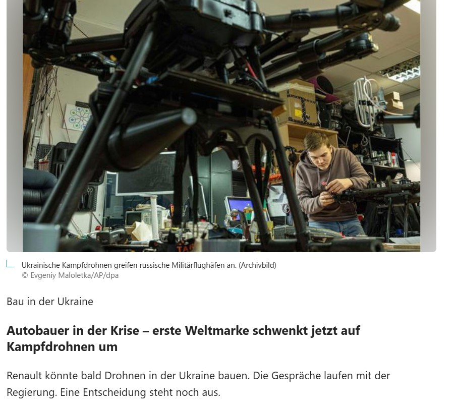 • ich frag mich echt ob die denn alle noch den letzten schuss gehört haben. panzer, kanonen, raketen und dronen in der ukruine bauen ?