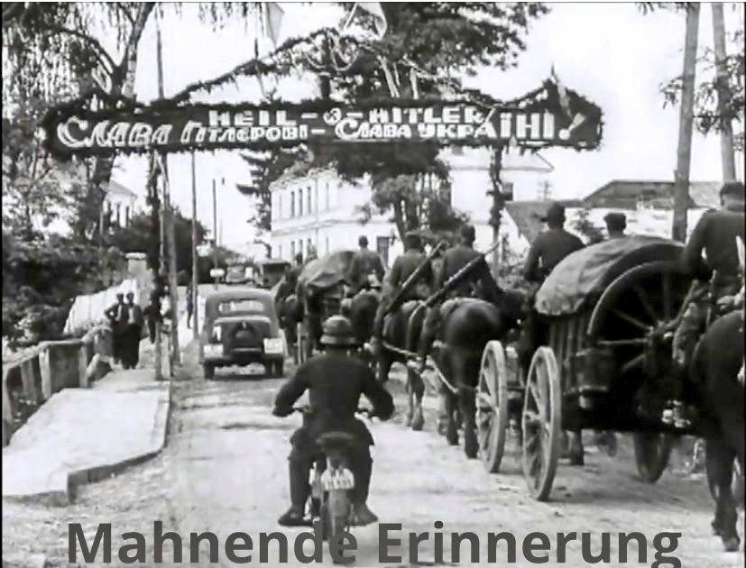 Aber drunter steht das Gleiche auf Ukrainisch und daneben Slava Ukraini.