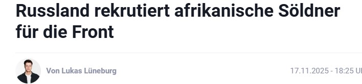 • Der Russe wird wohl lieber die Söldner in die Schlacht werfen als seine Bürger. Frieren die Afrikaner nicht in der Ukraine ?