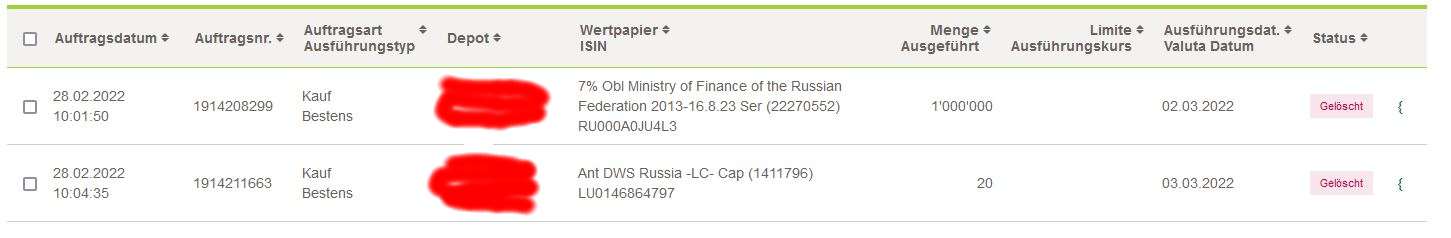 Da habe ich doch eine Aktienorder aufgegeben, nix kompliziertes, die wurde mir dann einfach NACH Einbuchung aufs Depot wieder gelöscht. Wir sind die Kinder in de Sandkiste - wenn wir nach Hause sollen, kommt Papa mit der Harke und tschüss :cursing: