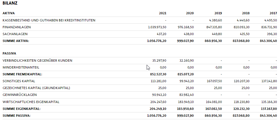 1Y-Chart & Bilanz per 2021 in MioCHF