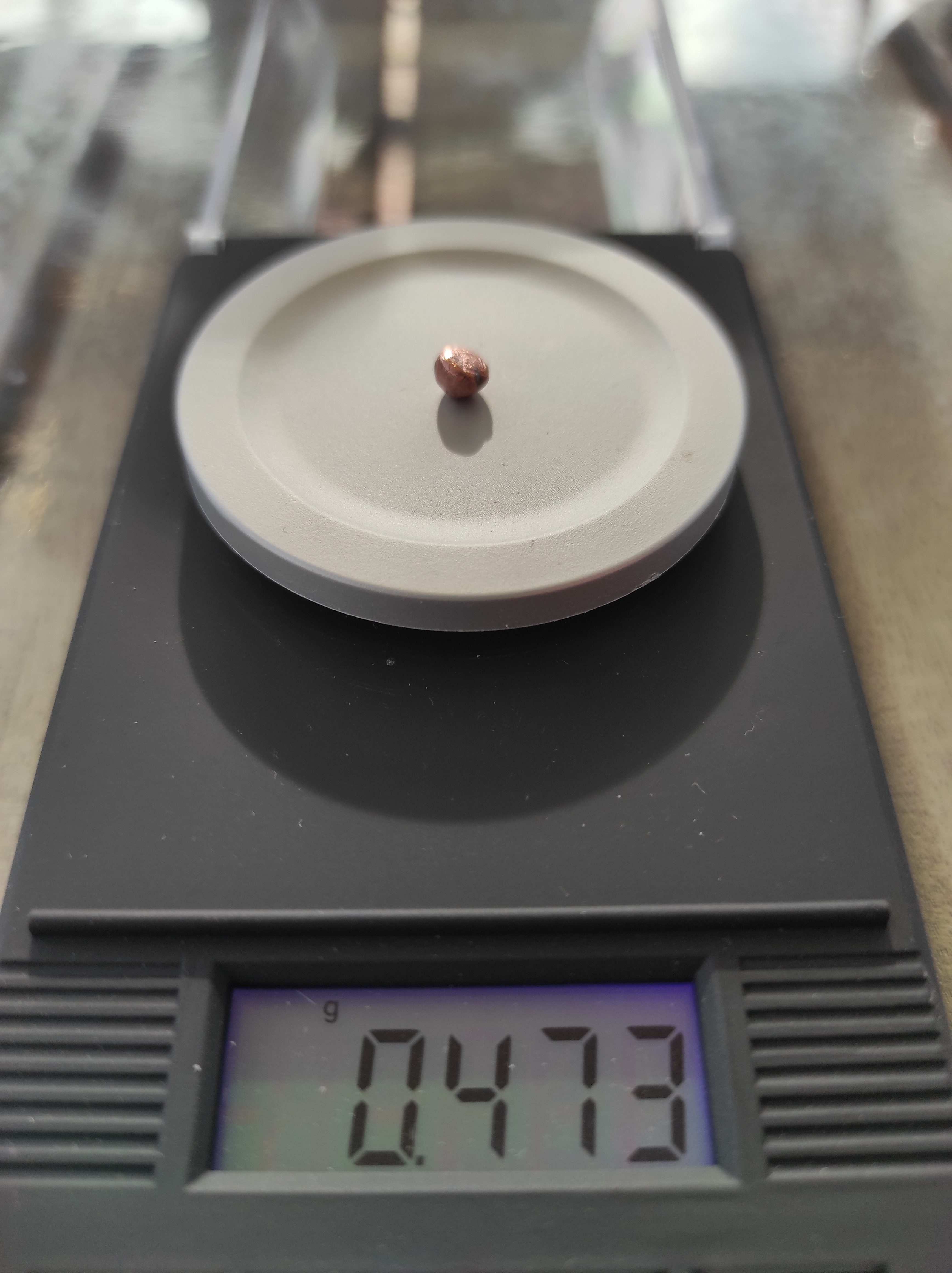 daher seitlich etwas eingedrückt. Das Gewicht einer Kugel beträgt 0,475 Gramm.