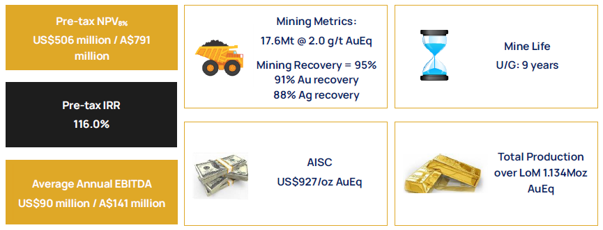 173.2m @ 3.27 g/t Au and 11.8 g/t Ag