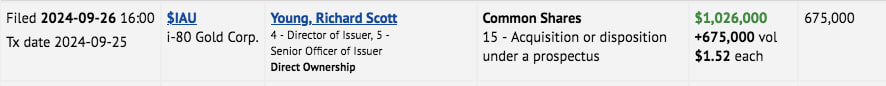 - However, this is not a reflection on the quality of i-80's portfolio of assets (processing infrastructure, above-average grade gold deposits), with exploration success pointing to 20+ million resource GEOs.