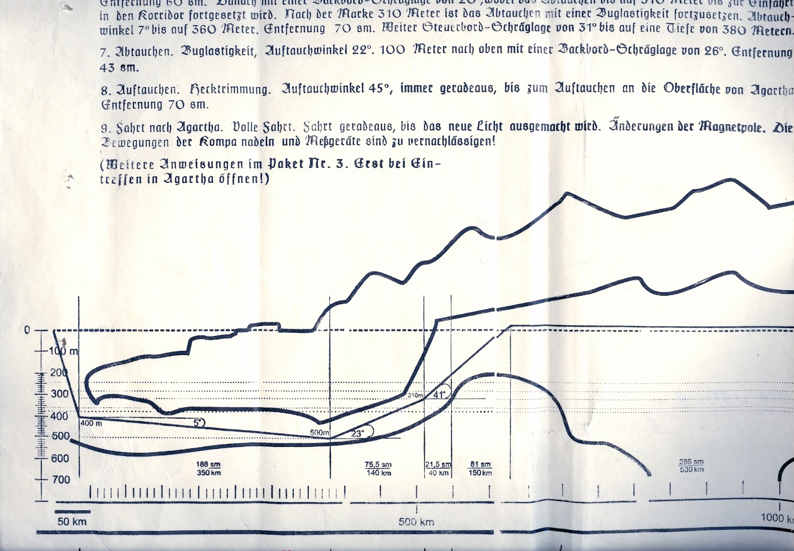 Es handelt sich um U-Bootfahrten zu einem Kontinent names Agartha, unter dem Polareis. Hier die detaillierten Fahrtanweisungen. Um so etwas als Fake zu erstellen, muss enormes Fachwissen vorhanden sein .... und WOZU? An wen sollte sich diese sehr speziellen Dokumente, in Russland gelagert, mit grossem Aufwand erstellt, denn richten?